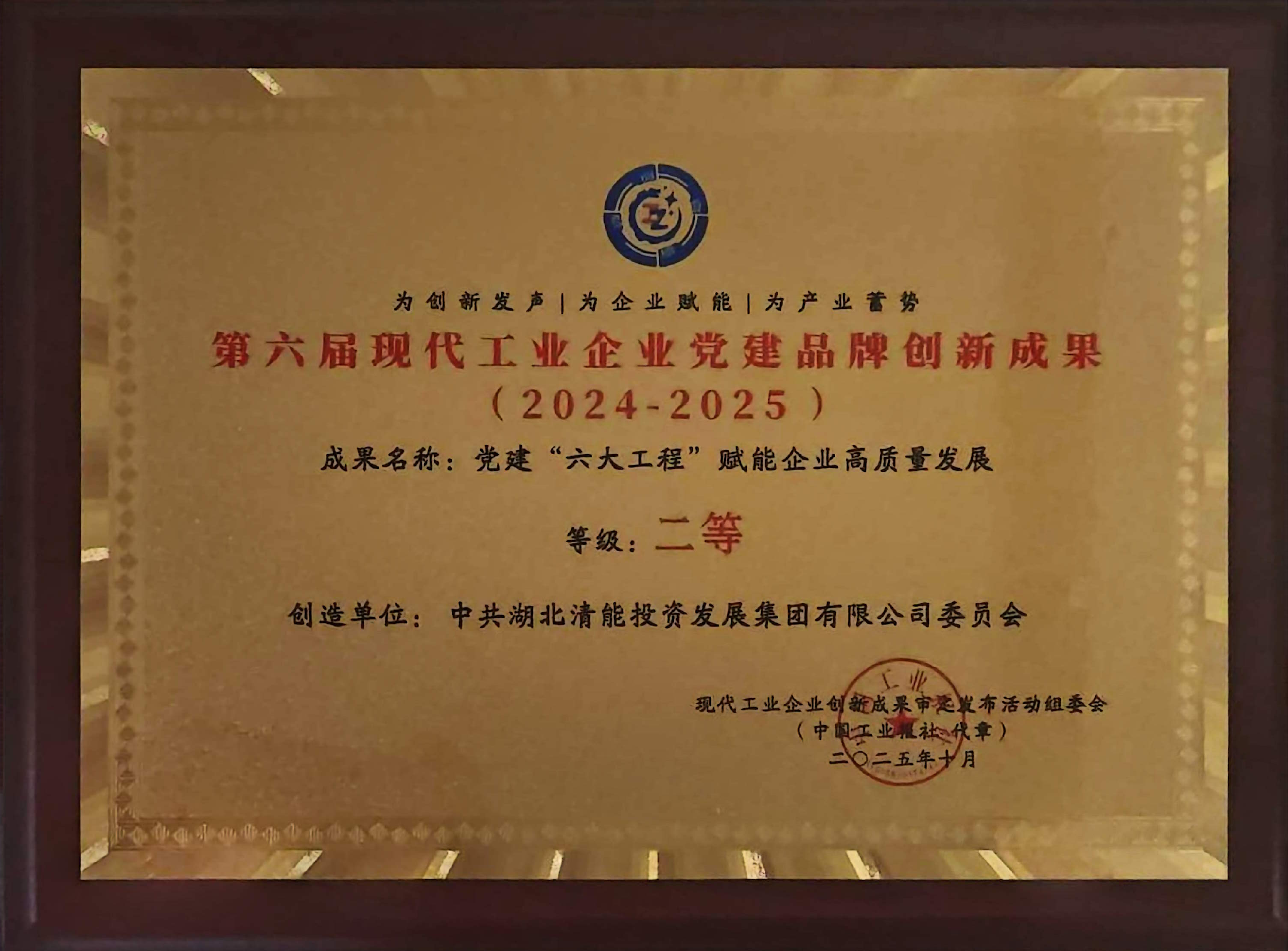第六屆現(xiàn)代工業(yè)企業(yè)黨建品牌創(chuàng)新成果
